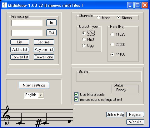 MidiMeow, a midi to wav/ogg/mp3 converter